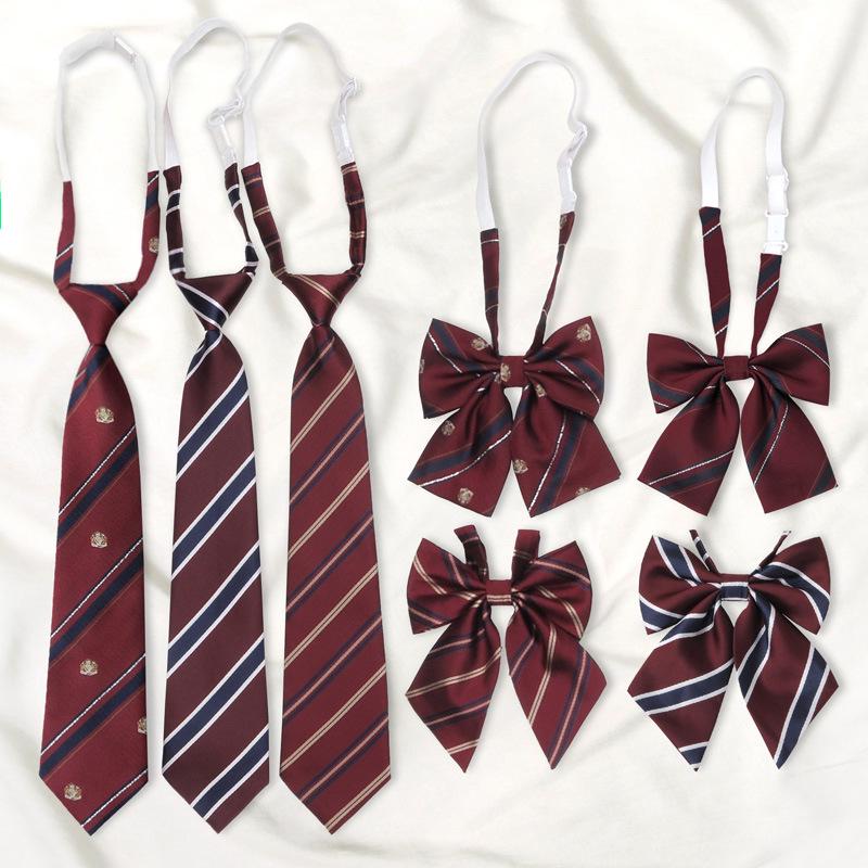 Women's Red Stripe No-Iron Japanese Academy Style Bow Tie Shirt Accessory