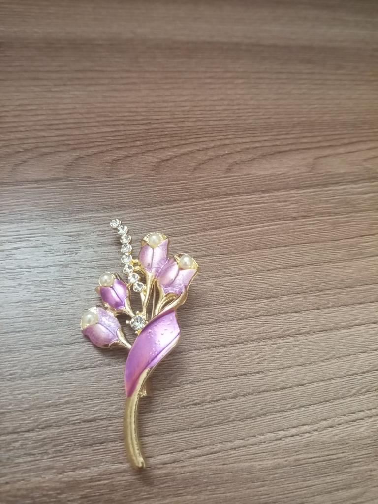 Water Diamond Enamel Tulip Brooch for Ladies, a High-end Pearl Flower Brooch, a Fashionable Brooch