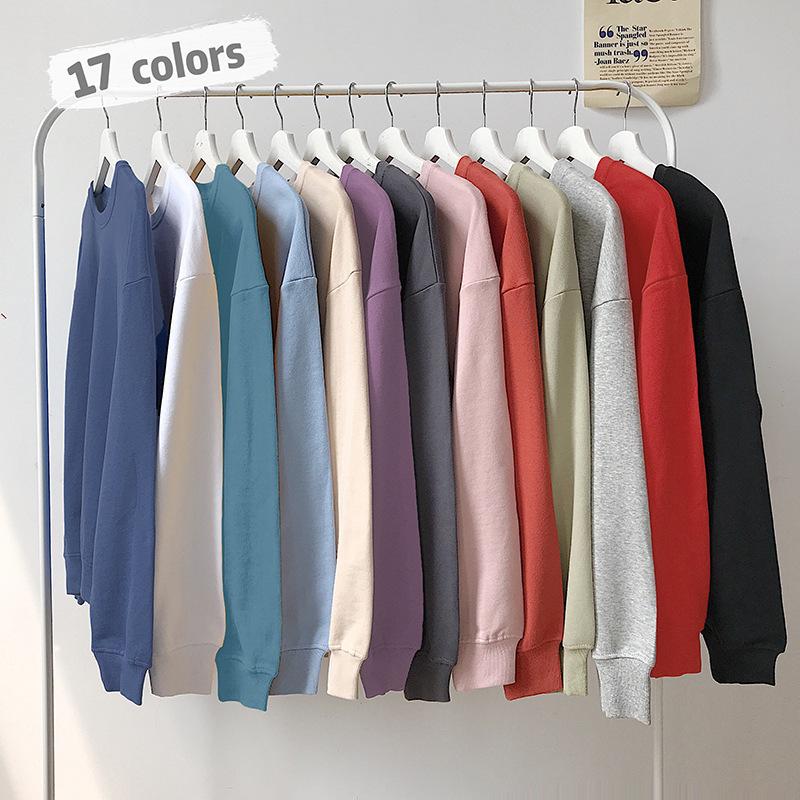 Unisex Crewneck Sweatshirt - Loose Fit for Spring and Autumn, Solid Color, Long Sleeve, Trendy and Versatile.