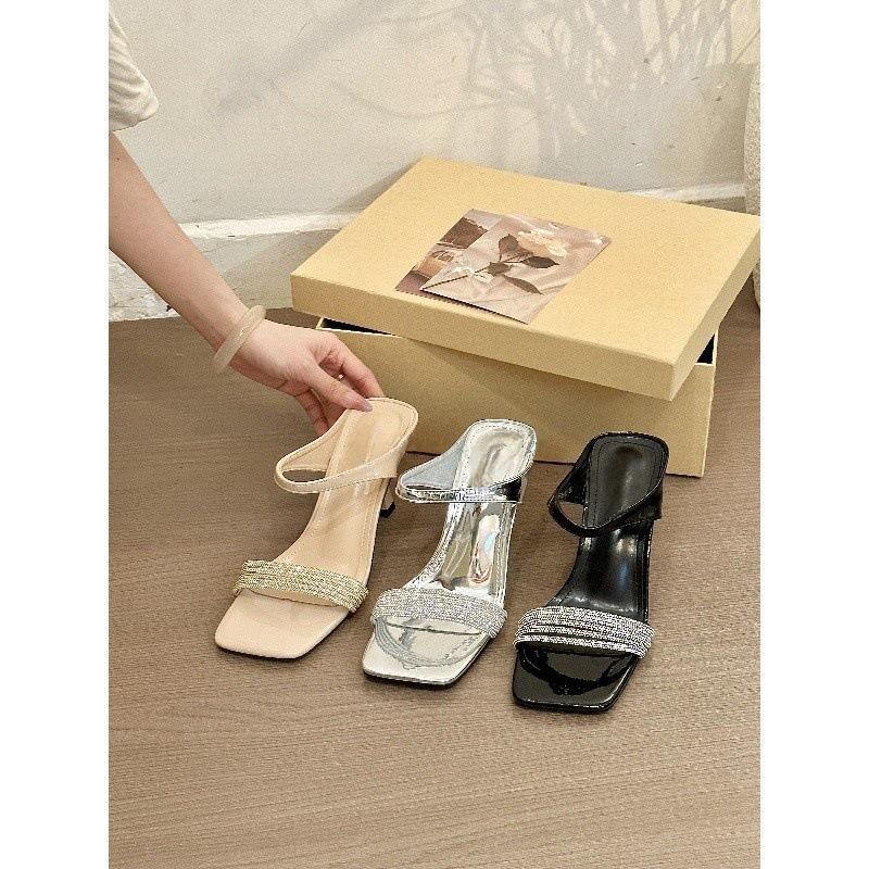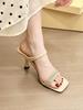 Inadvertent Beauty! Temperament Square Head Rhinestone Word with Thin Heel Sandals Women's Summer Open-toed High-heeled Sandals