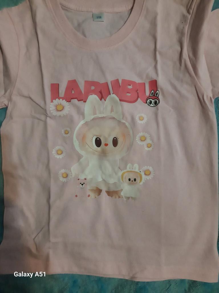 Labubu Mokoko T-shirt for Children Cartoon Round Collar Tee Top New Boys Girls Clothes Cute Short Sleeve Kids Pink Clothing Gift