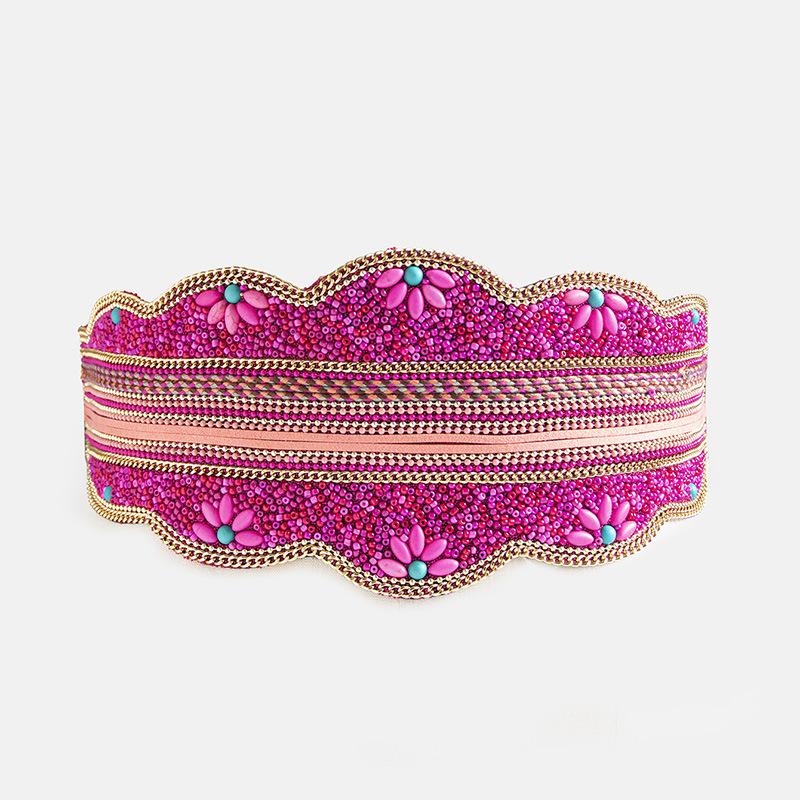A New Wide Belt for Women, A Handmade Bohemian-style Elastic Wide Waist Seal with Ethnic Style Heavy Industry Rice Beads