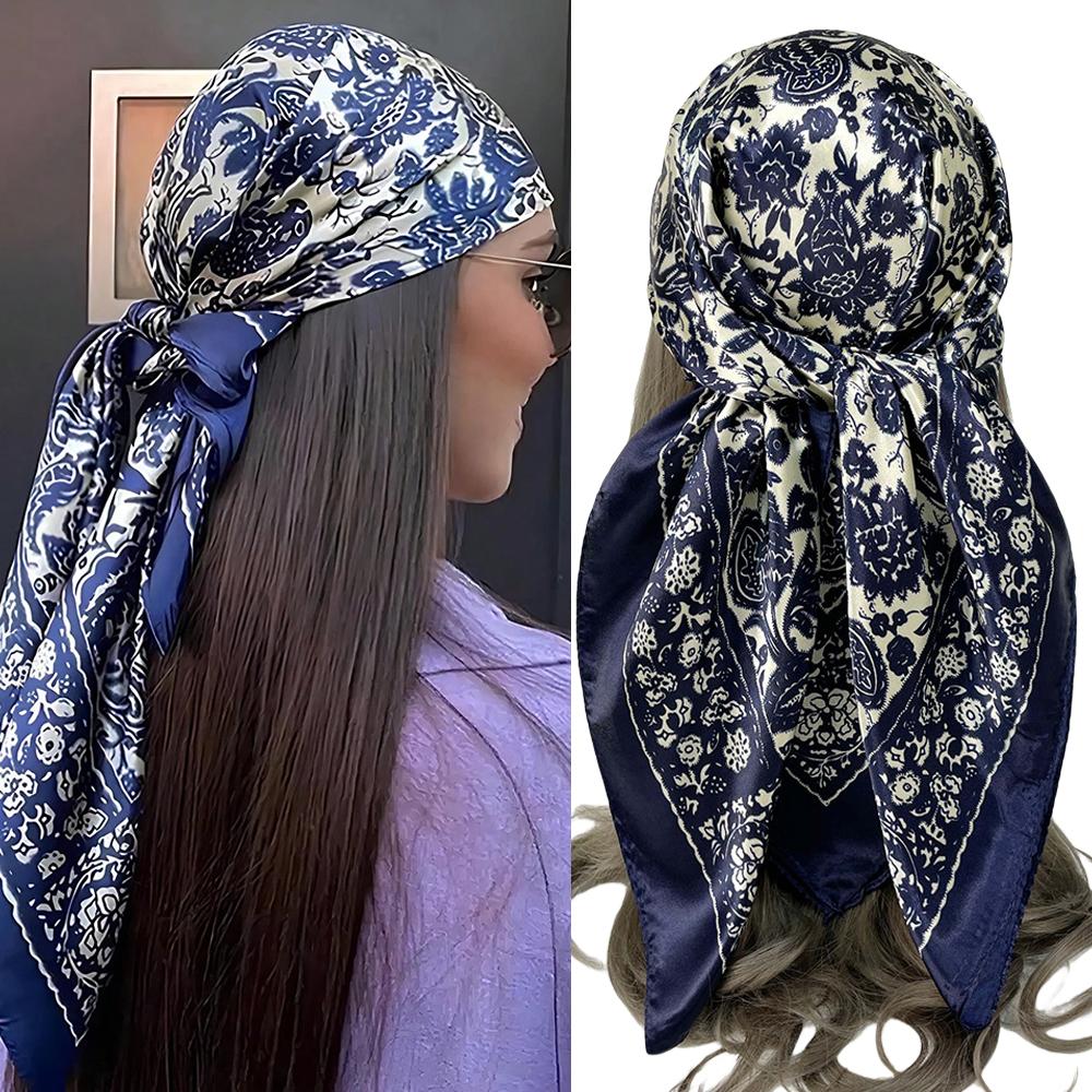 90*90cm Hijab Scarves Women Cashew Print Satin Female Luxury Brand Square Shawls Head Ladies Bandanna Foulard Muffler Girl