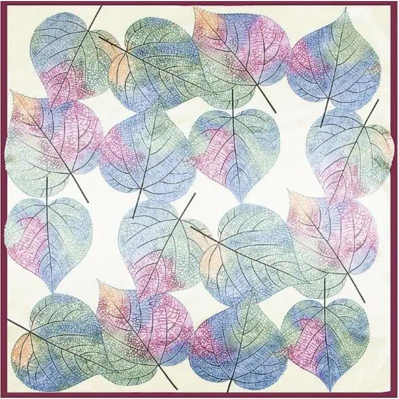 90*90cm Square Silk Scarf Women Big Size Leaves Printed High Quality Shawl Hijab Ladies Scarves Wraps