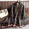 Color Letter Silk Scarf Light Luxury Fashion Scarf Simulation Silk Large Size Shawl Silk Scarf Women