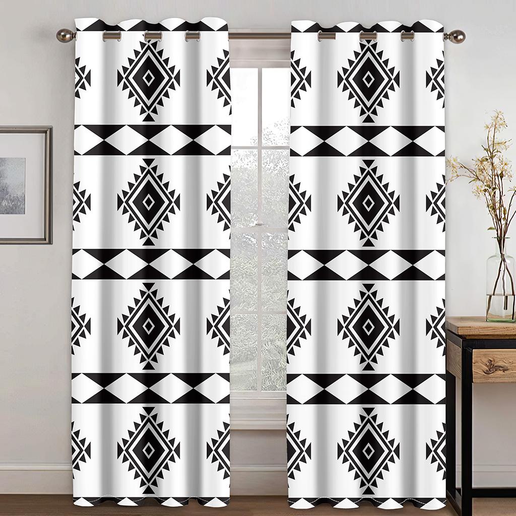 Bohemian Style Black & White Color Texture Curtains 2PCS European Luxury Living Room Bedroom Balcony Kitchen Window Decor