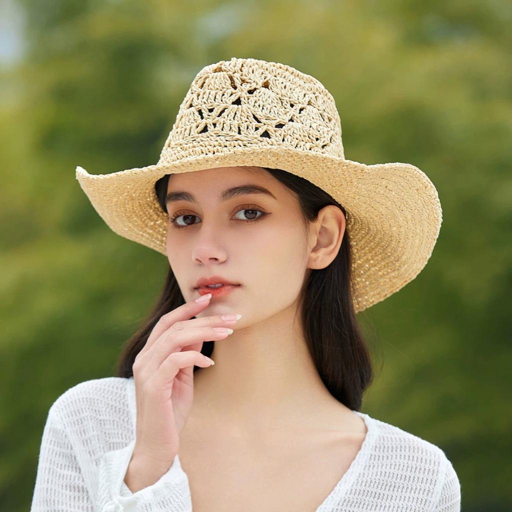 Hollow Big Brim Jazz Hat British Retro Cowboy Straw Hat Summer Vacation Beach Hats
