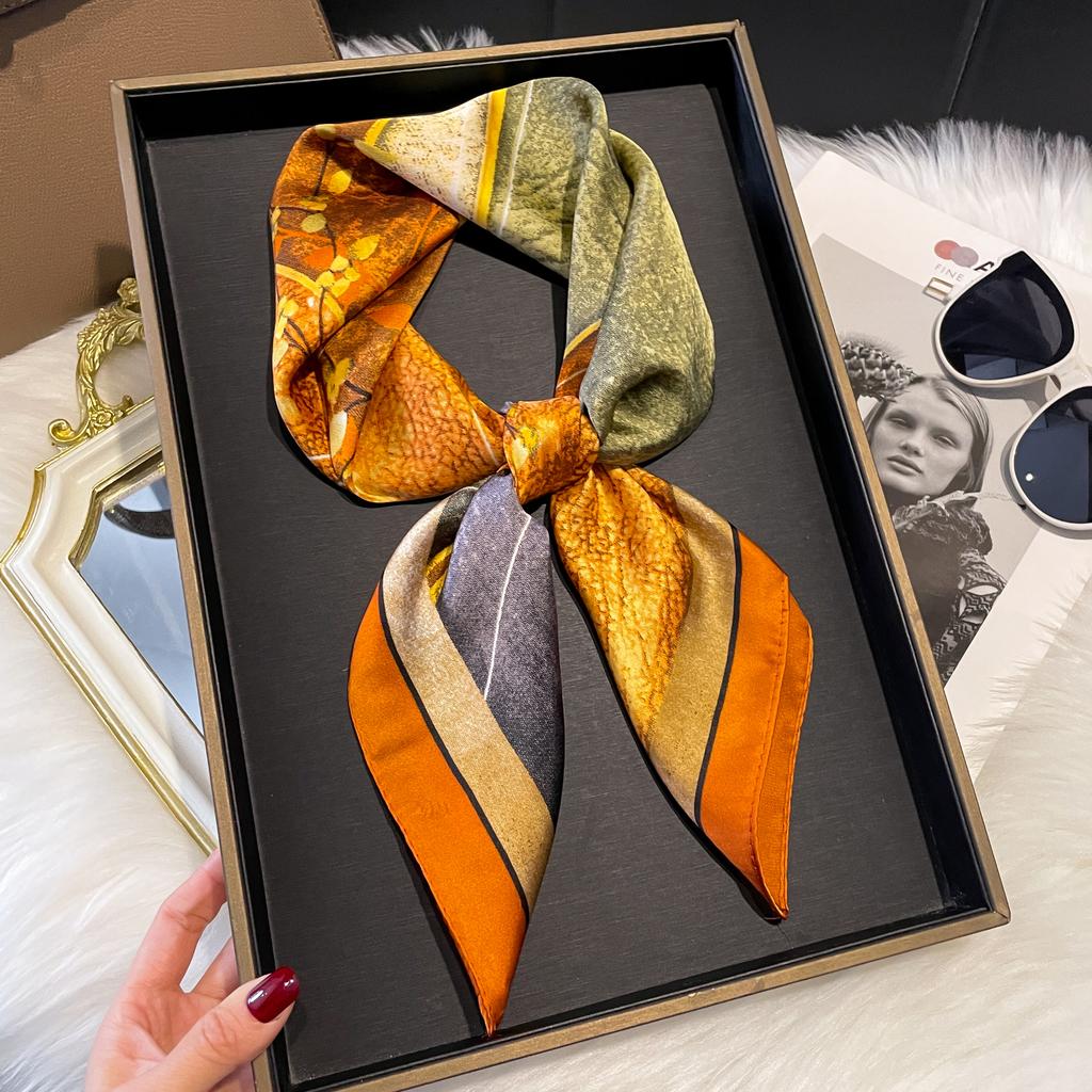 Luxury Fashion Print 70*70cm Silk Square Scarf Women Soft Satin Hairband Neckerchief Tie Female Headband Foulard Bag Ribbon
