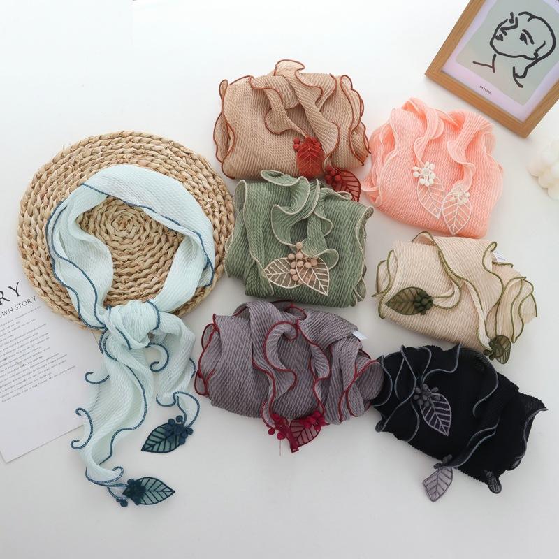 Contrast Color Small Scarf Women's Thin Elegant Silk Scarf Artistic Leaf Pendant Gentle Scarf Diamond Neckerchief Headband
