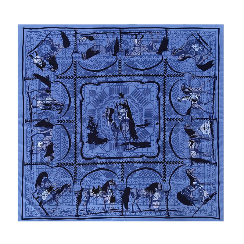 POBING Luxury Brand Silk Scarf Women Tame Horse Printed Square Scarves Wraps Female Large Hijab Big Shawl Neckerchief 130CM