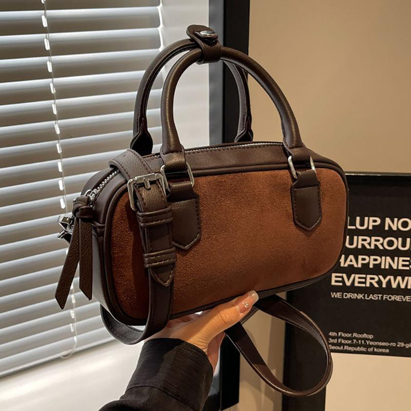 - **Structured Multi-Way Bag Details**: Features a stylish barrel bag silhouette with PU material, a vintage textured finish, metal hardware accents, and dual carrying options (short handles and an adjustable shoulder strap). It offers versatile carrying options (handheld, shoulder bag, crossbody bag), exuding retro and edgy charm. Three distinct color options cater to diverse style preferences.