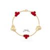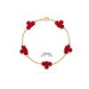 15MMHigh-quality Four-leaf Clover Five-flower Bracelet for Women 18k Natural White Mother-of-pearl and Red Chalcedony Bracelet