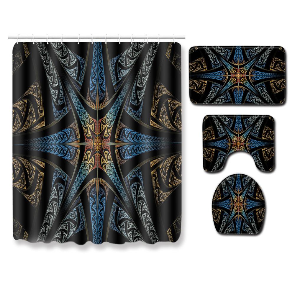 Cool Pattern Shower Curtain Floor Mat Combination Four-Piece Set Bathroom Toilet Carpet Mat Foot Mat