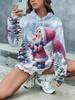 Women's Christmas Dwarf Print Hoodie, Casual Pullover, with Kangaroo Pocket, Medium Stretch Knitted Fabric, Four Season Long Sleeve Hoodie