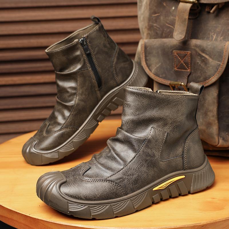 Wear-resistant Boots Autumn and Winter Fashion Non-slip Black Velvet Martin Boots New Versatile Trendy Men's Shoes Comfortable Trendy Leather Boots