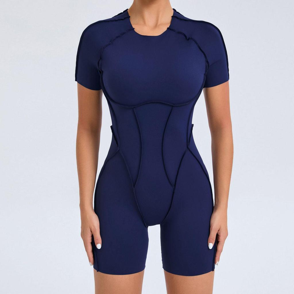 The Patchwork Hollow-Back Sports Jumpsuit is a stylish and functional choice for active women. Made from a soft and breathable cotton blend, it offers superior comfort and flexibility, perfect for workouts or casual wear. This one-piece fitness outfit features a unique hollow-back design, adding a fashionable edge while ensuring ease of movement. Ideal for those looking to enhance their fitness wardrobe with a versatile and eye-catching piece.