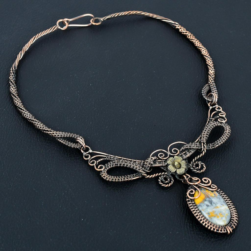 Malingano Jasper Necklace Handmade Jewelry, 999 Copper Wire Wrapped Necklace Designer Gemstone Jewelry Adjustable Chain Necklace
