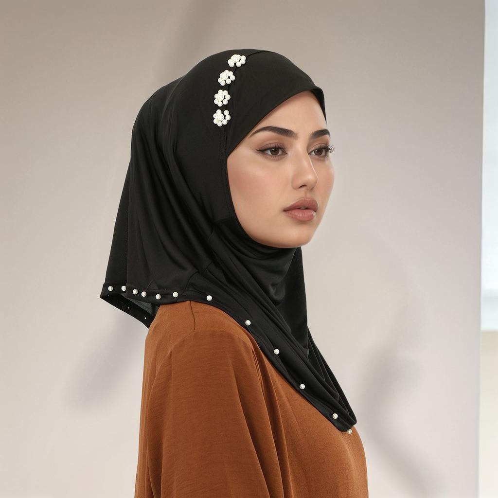 Women Jersey Instant Hijabs with Beading Muslim Hijab Caps Turban Cap Hair Wraps Turban Headband Bonnet Hijab Instant Hijab