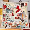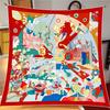 Twill Silk Scarf Shawl Brand Cartoon Circus Performance Square Scarf Women Hijabs Bandana Foulard Neckerchief Head Scarves