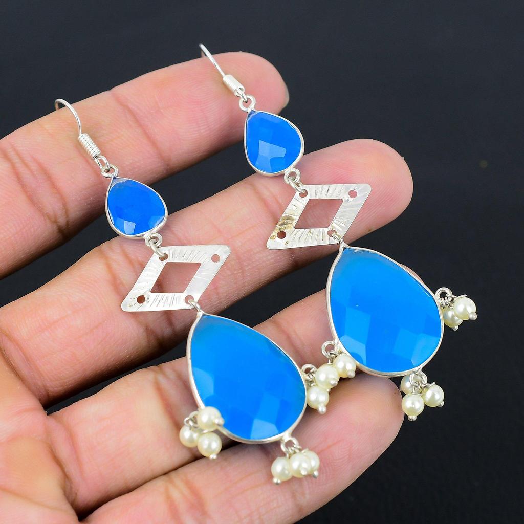 Halloween Sale 925 Sterling Silver Natural Blue Sapphire Drop Earrings Jewelry