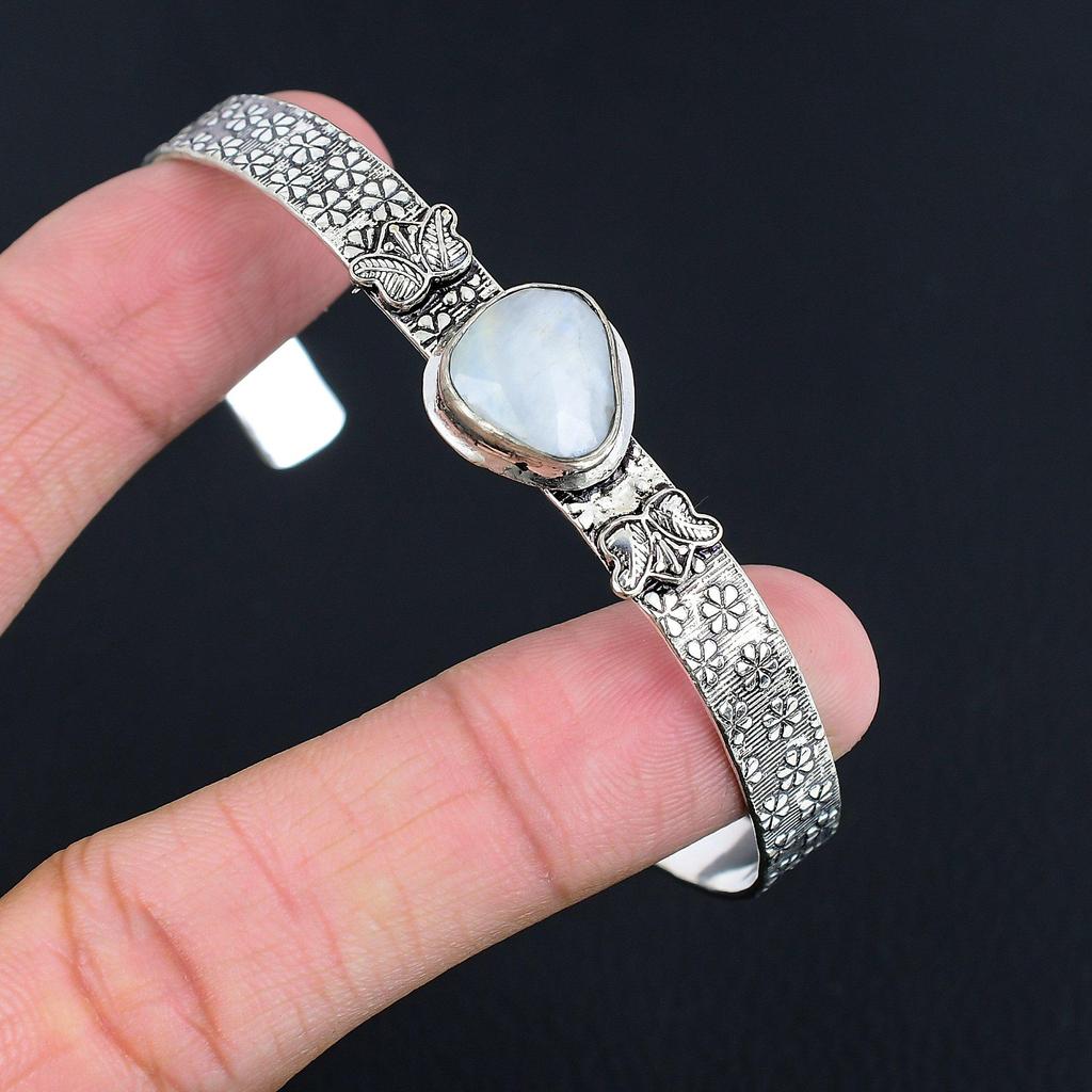 Pear Rainbow Moonstone Stone 925 Silver Anniversary Daughter New Bangle Bracelet