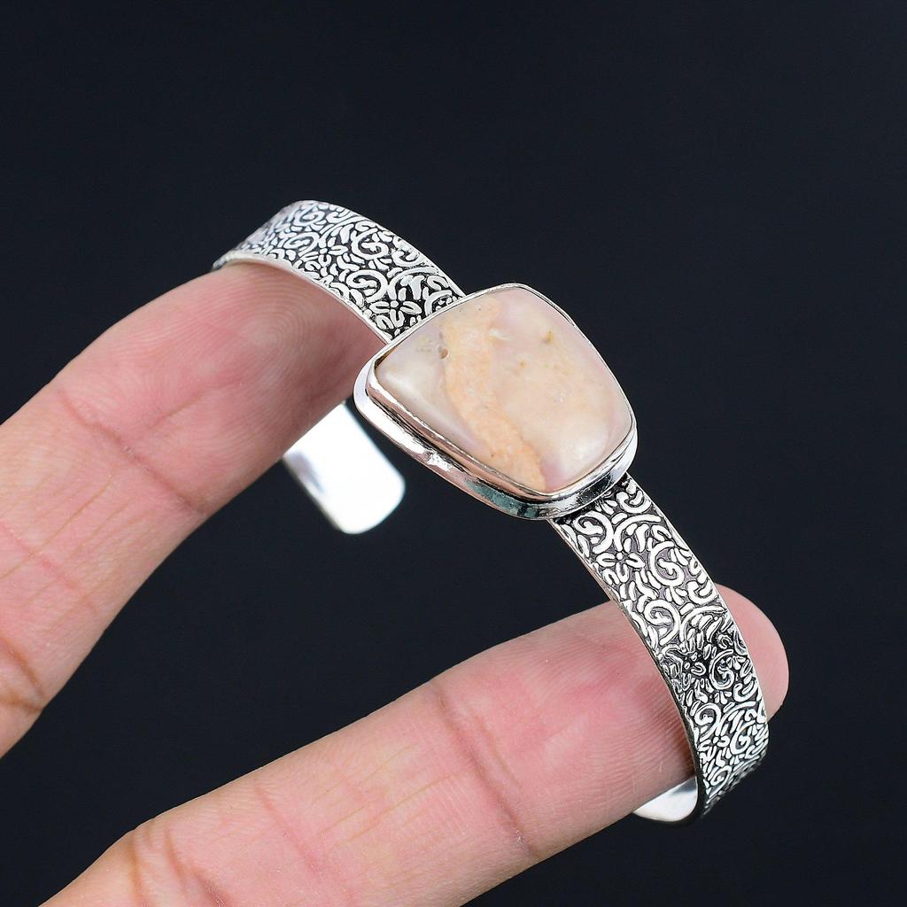 925 Sterling Silver Trillion Pink Opal Stone Birthday Wedding New Bangle Jewelry