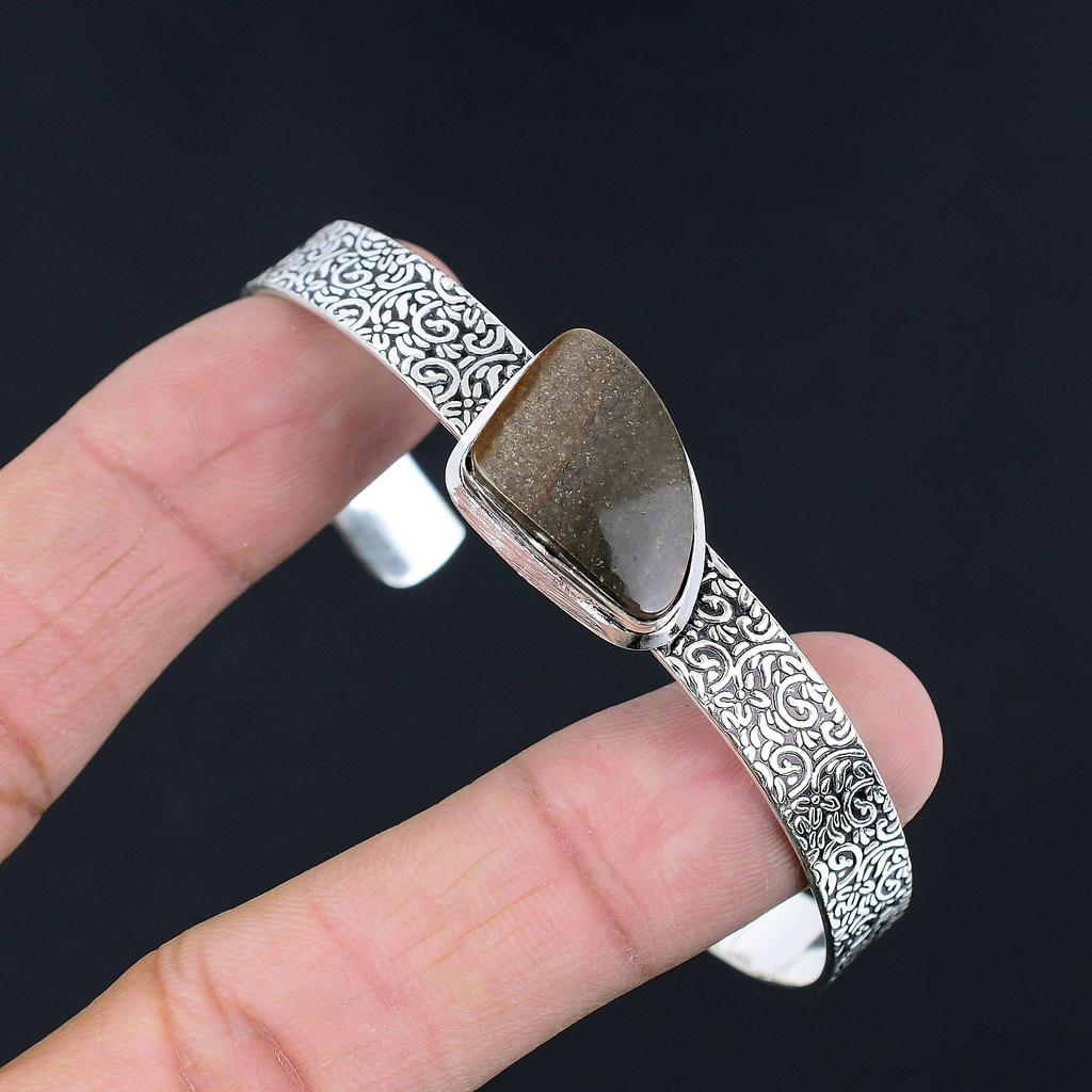 Friendship Day Deal Trillion Landscape Jasper Gemstone 925 Silver Wedding Bangle