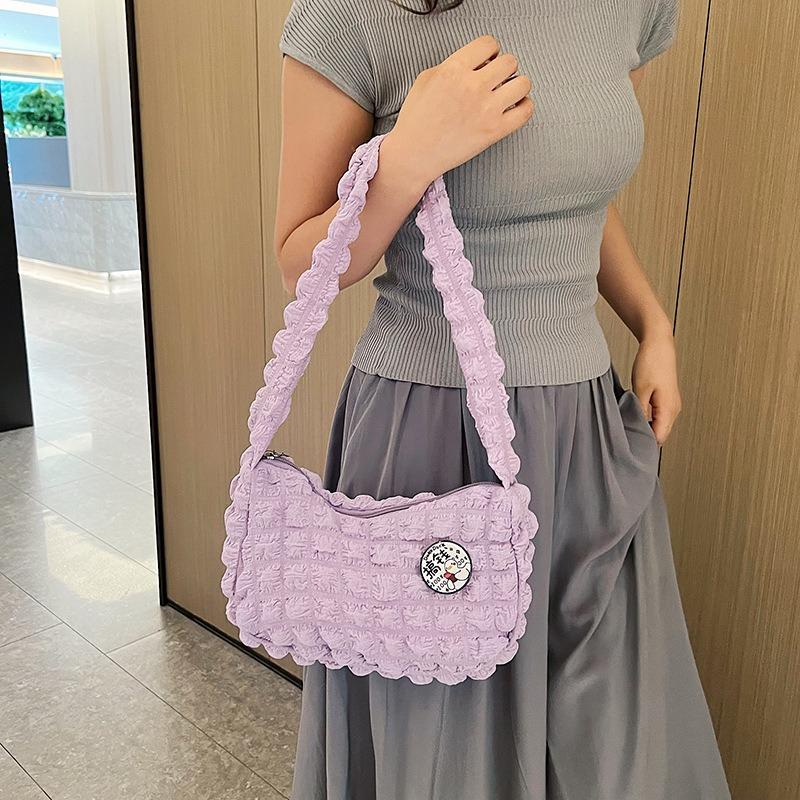 Today's Popular Cloud Puff Bag Girl Fashion Pleated Shoulder Bag Simple Solid Color Student Portable Underarm Bag