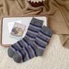 Women's Spring and Autumn Vintage Collage Striped Embroidered Letters In Cylinder Stack Socks