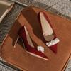 8820 Pointed High Heels Women's Thin Heels 2025 New Pearl Shallow Mouth Single Shoes Show Clothes Red Bridal Wedding Shoes