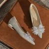 210-1 Flat Single Shoes Women's 2025 New Pointed Crystal Wedding Shoes Rhinestone Bow Thick Heel Shallow Mouth Bridesmaid Shoes