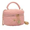 - **Premium PU Material**: Made of high-quality PU leather, it is durable, has a glossy quilted finish, and showcases a cute appearance with its metal charms and structured shape, ensuring long-lasting use and a refined luxurious look. The material is easy to maintain.