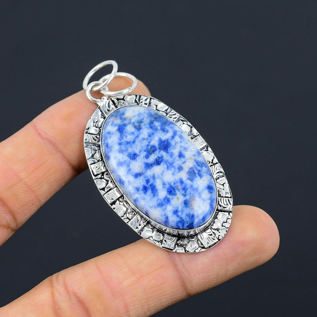 Anniversary Gift For Her Natural Sodalite Gemstone Pendant 925 Sterling Silver