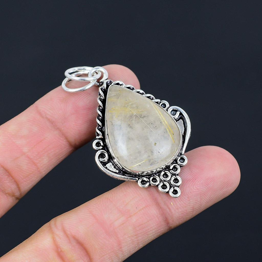 Daughters Day Deal 925 Silver Natural Golden Rutile Bezel Boho Pendant Jewelry