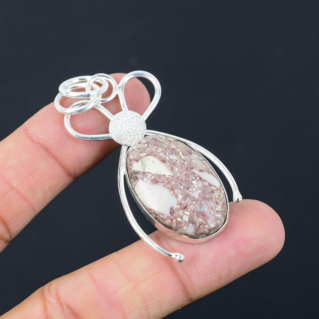 Easter Sale 925 Sterling Silver Red Brecciated Mookaite Stone Pendant Jewelry