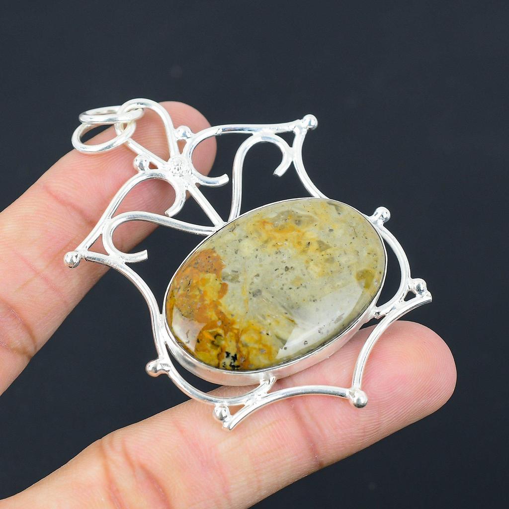 Oval Polychrome Jasper Gemstone Art Deco Trendy Pendant Jewelry Sterling Silver