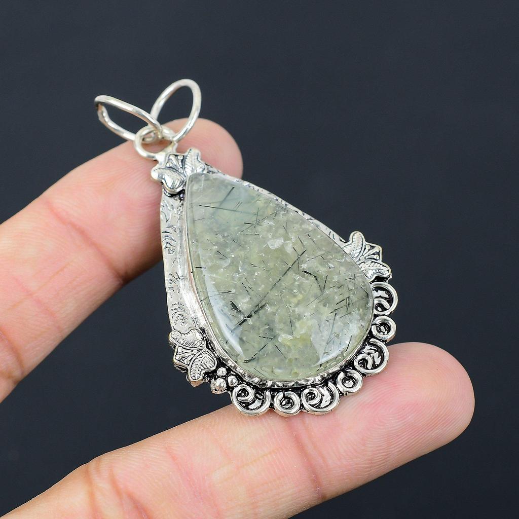 Birthday Gift For Her Natural Moss Prehnite Gemstone Pendant 925 Sterling Silver