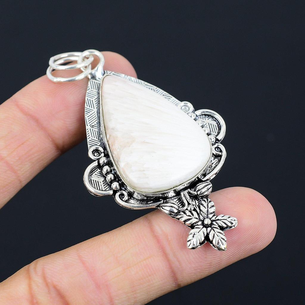 Gift For Women Pendant Flower 925 Sterling Silver Natural Scolecite Gemstone