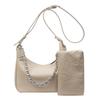 - **Structured Multi-Way Bag Details**: Features a stylish hobo bag set with PU material, a textured crinkled finish, a contrasting metal chain accent, and an adjustable shoulder strap. It includes a matching pouch, exuding edgy and casual charm. Three classic color options cater to diverse style preferences.