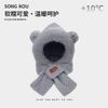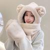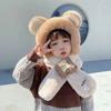 Riding a Battery Car, Piled and Thickened Bear Hat, Warm Scarf, Ear Protection, Two-in-one Two-piece Set, Cycling Cold-proof Plush Hat.