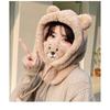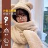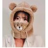 Bear Mask Hat Winter Scarf Integrated Gloves Scarf Hooded Female Cute Warm Three-piece Set Autumn and Winter
