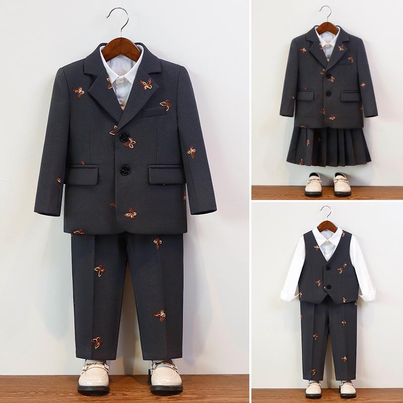 This charming and sophisticated suit set for children is perfect for autumn and winter events, designed to bring a touch of classic academia style to boys and girls alike. The set includes a formal wear skirt and a matching suit, both crafted from high-quality polyester material for comfort and durability. Featuring long sleeves, this ensemble is ideal for performances or any special occasion where children are the stars, offering both style and practicality in cooler weather.