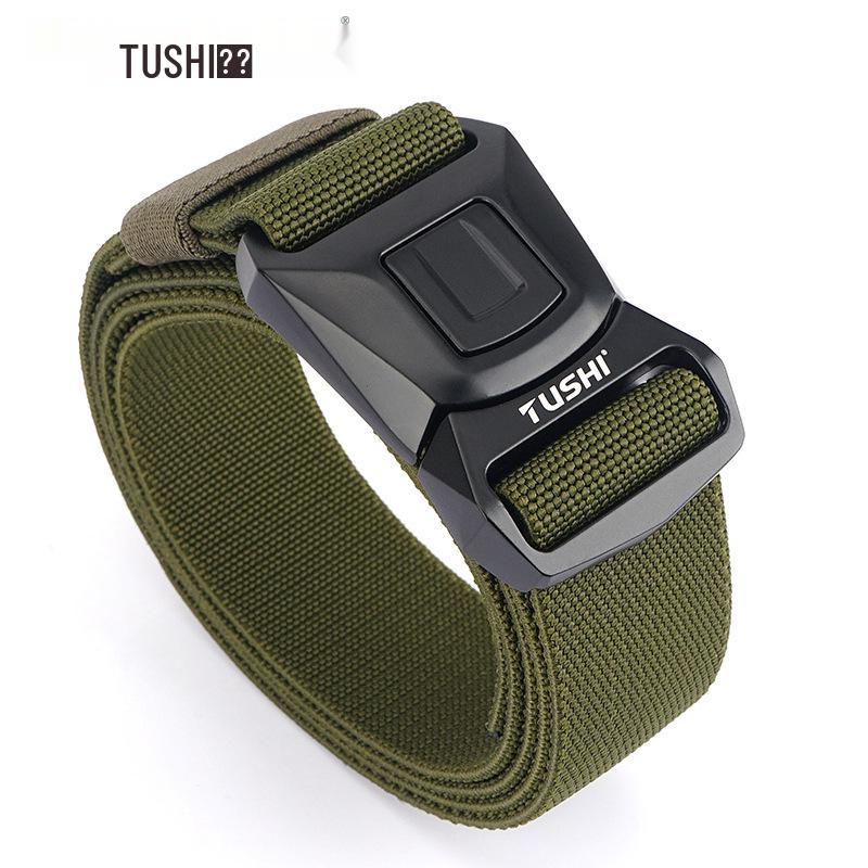 Men's Quick-Release Elastic Workwear Belt with Leather Trim