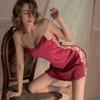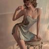 Yi Yue Women's Silky Side-Slit Lace-up Nightgown Set
