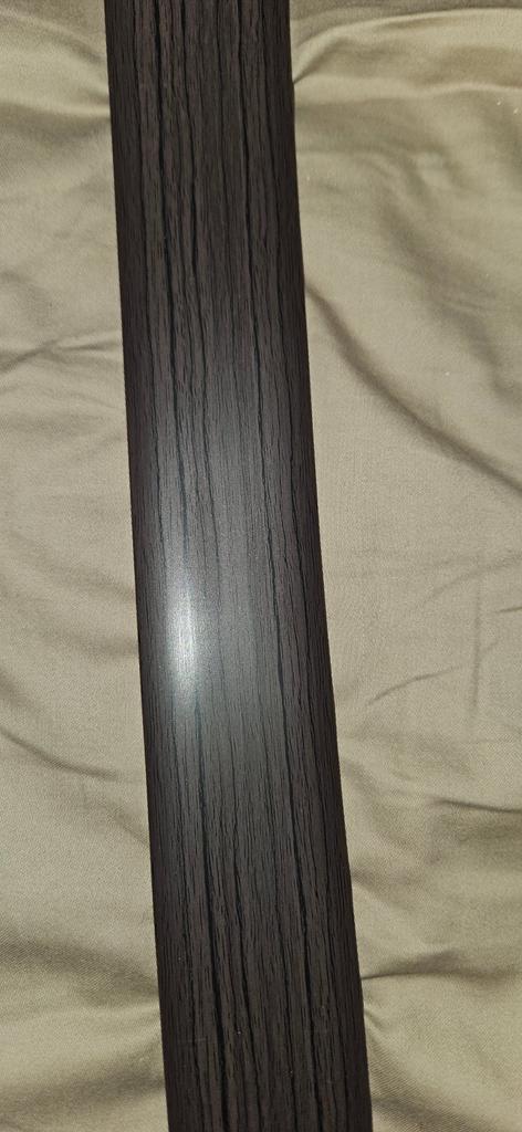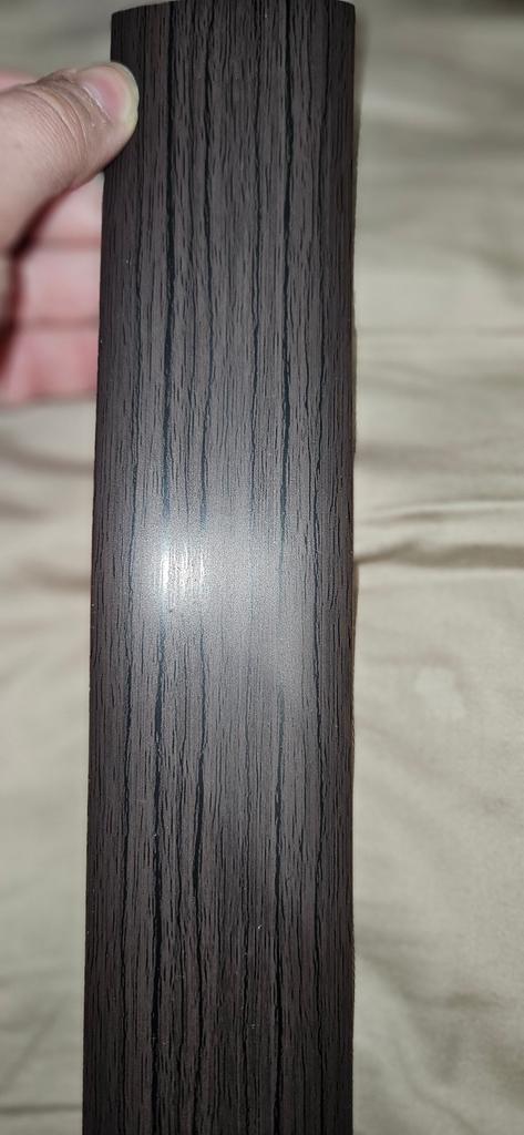 The photo doesn't convey the color. In person, it's a bit more chocolate-like, perhaps. I ordered 2 meters. It arrived in one whole piece of 207 cm and an honest 5 cm width. Thank you, super!