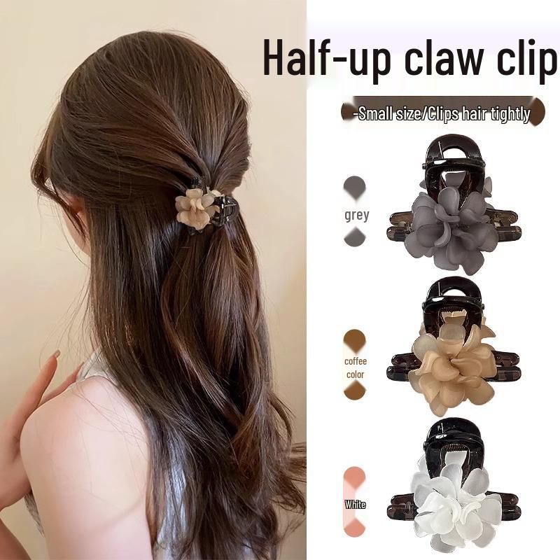 Exquisite Camellia Hair Clip: Elegant Shawl Accessory for Short Hair, Ideal for Stylish Half-Tie Looks and High-End Fashion.