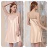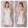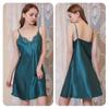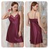 Indulge in luxurious comfort with this elegant nightdress, crafted from high-quality polyester for a silky-smooth feel. The twisted satin construction provides a subtle sheen, enhancing its sophisticated look. Designed with a flattering V-neckline and delicate lace trim, this nightdress is both stylish and comfortable. The strappy design offers a contemporary touch, while the sleeveless cut ensures freedom of movement. Perfect for a restful night's sleep or lounging in style.