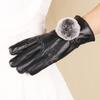New Autumn and Winter Women's Sheepskin Gloves, Velvet Warm Leather Rex Rabbit Hairball Riding and Driving Leather Gloves