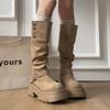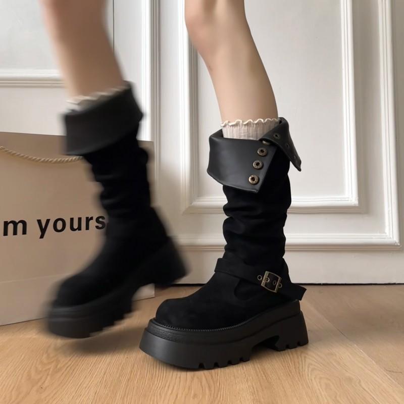 Fashion British Style Foldable Thick Heel Platform Boots Autumn and Winter Retro Design Sense Thin Women Knight Boots