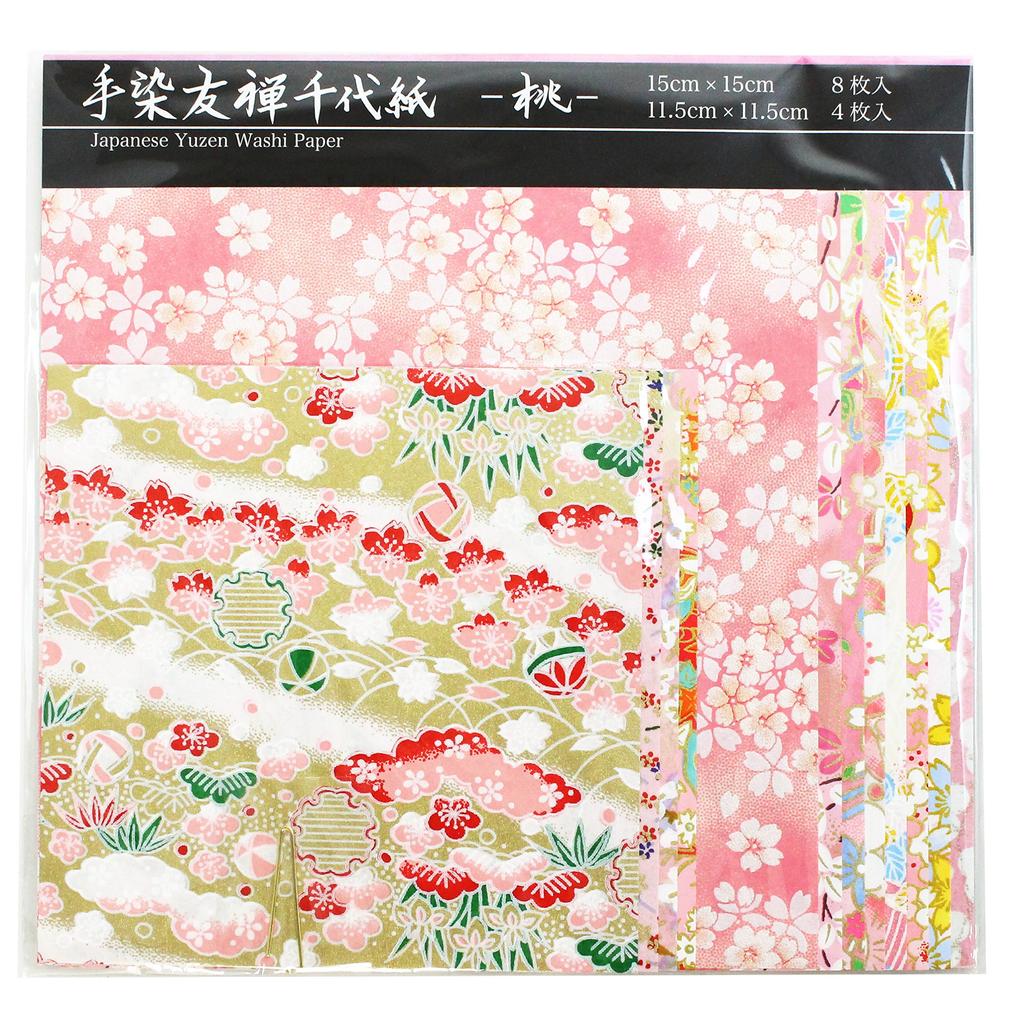WRC Origami Yuzen Chiyogami Peach Color 15cm X 8 X 4 Sheets Hand-Dyed Sheets, 11.5cm YZ-C-005